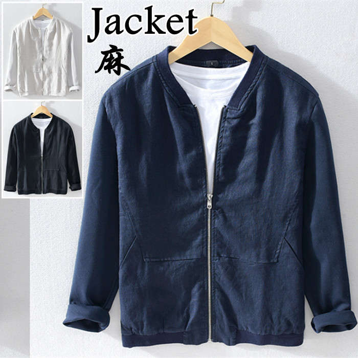綿麻 春夏秋物 サマージャケット 男性用 リネン 襟立ちカーディガン 3色 黒 白 紺 緑メンズファッション コート ジャケット