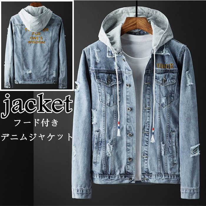 春秋服 ゆったり デニムジャケット ダメージ加工 ショートコート アウター ブルーメンズファッション コート ジャケット