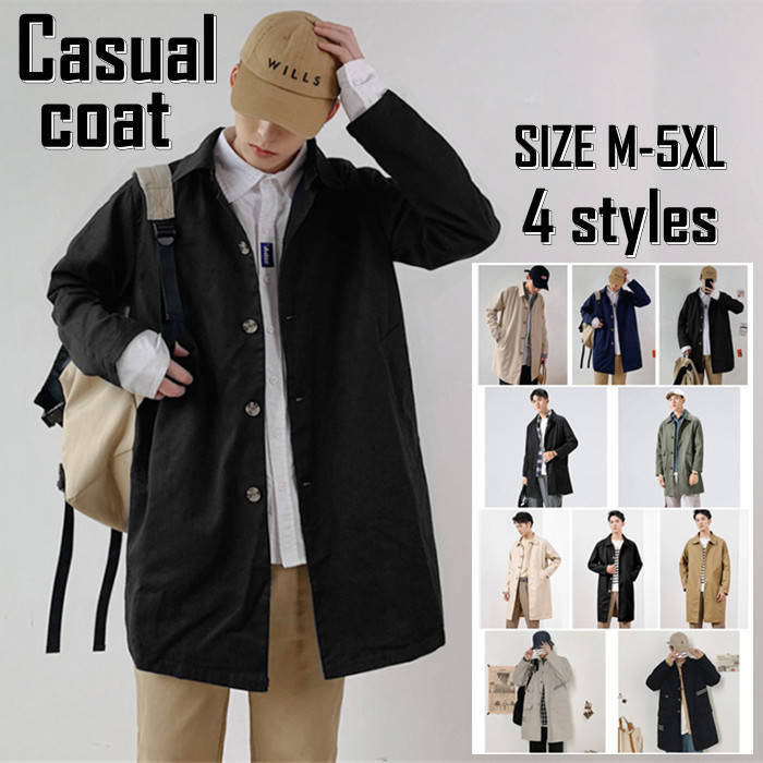 ステンカラーコート スリム 薄手 カジュアル ロング丈 春秋 アウター 6色メンズファッション コート ジャケット