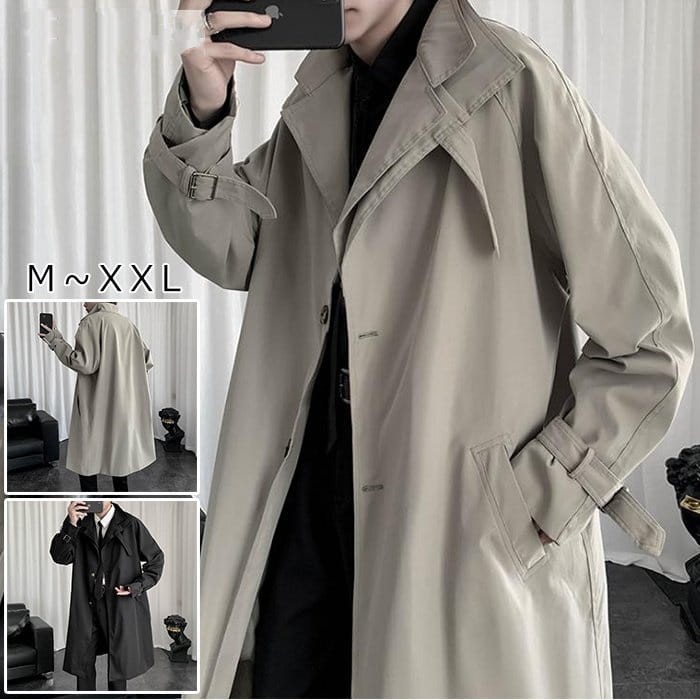 男性用 綿麻シャツ ステンカラーコート ミドル丈 ゆったり柄 アウター 2色 黒色 白色メンズファッション コート ジャケット