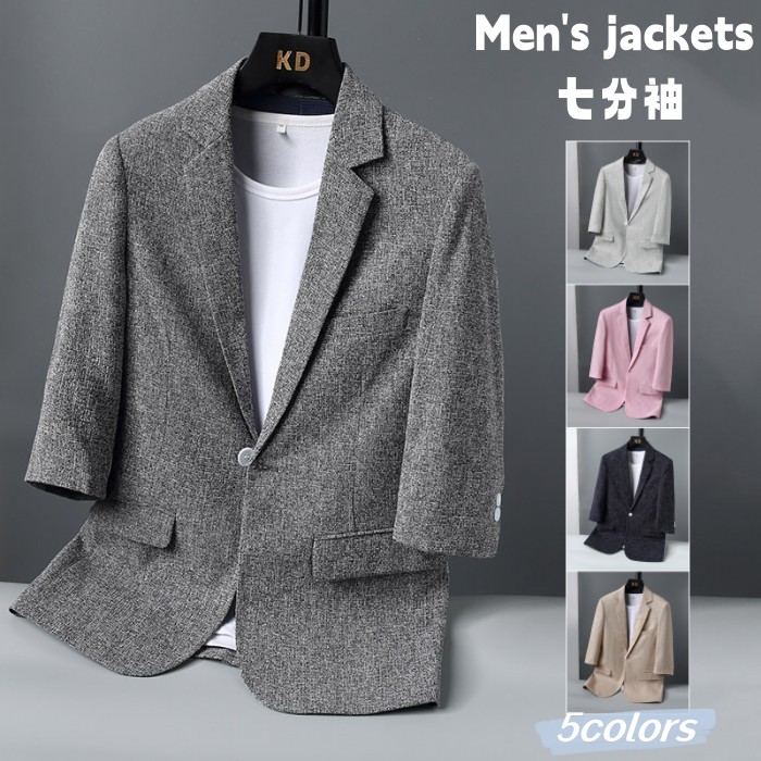 スリム メンズ おしゃれジャケット 七分袖 テーラードジャケット 春物 夏服 ブレザー ライトグレー 5色