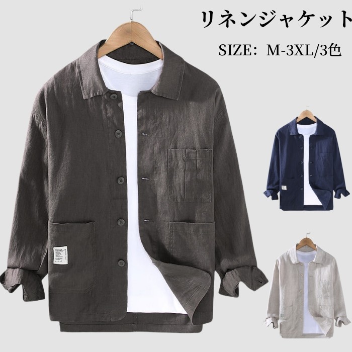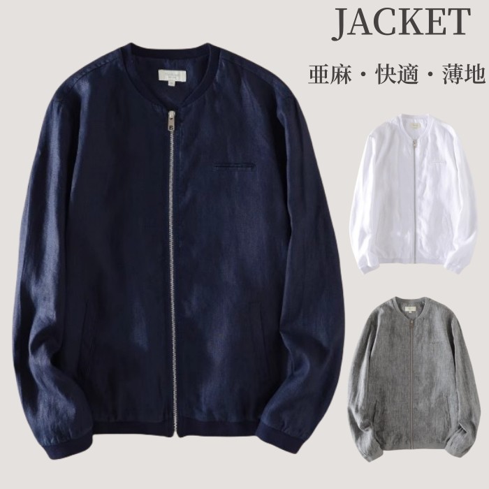 亜麻100% ジャケット 通気 快適 サマージャケット 薄地 ライトアウター レトロ 男性用メンズファッション コート ジャケット