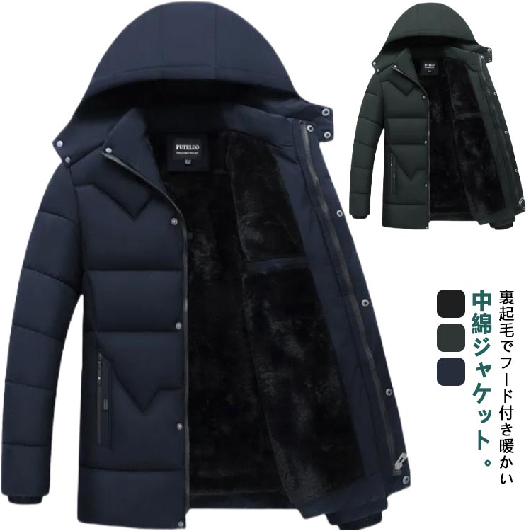 秋冬 コート 中綿 長袖 厚手 中綿 冬服 暖かい メンズ フード付き ジャケット 防風 防寒 大きいサイズ 保温 防水 暖かい 裏起毛