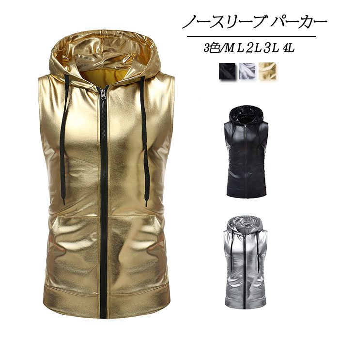 ステージ衣装 メンズ ノースリーブ パーカー ベスト 男性 ダンス衣装 ステージ衣装 舞台衣装 ヒップホップ3色 シルバー ブラック ゴールド 団体 ダンス 発表会