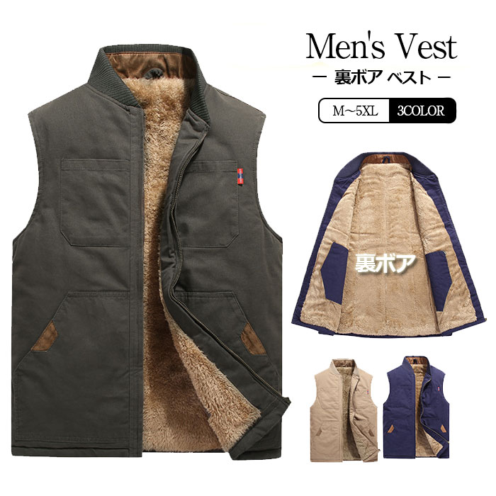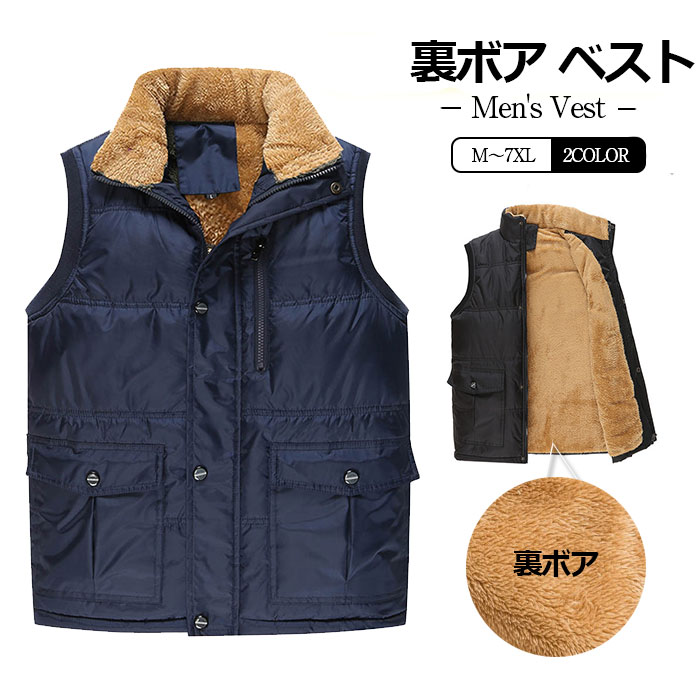 裏ボアベスト メンズ 防寒ベスト 防寒チョッキ ベスト メンズ カジュアル ベスト 秋冬 暖かい 保温 メンズベスト アウター 秋服 冬服 メンズファッション ブラック ネイビー
