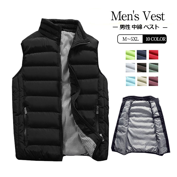 中綿ベスト メンズ ダウンベスト フードなし 防寒ベスト 暖かい 保温 メンズベスト アウター 秋服 冬服 メンズファッション ブラック レッド グリーン グレー コーヒー