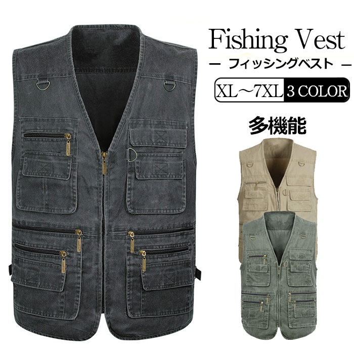 フィッシングベスト メンズ ベスト 多ポケット 多機能 ベスト ミリタリー 便利 収納 ポケット 機能性 釣り 渓流 登山 アウトドア キャンプ 作業着 作業服 メンズ ベージュ グリーン グレー
