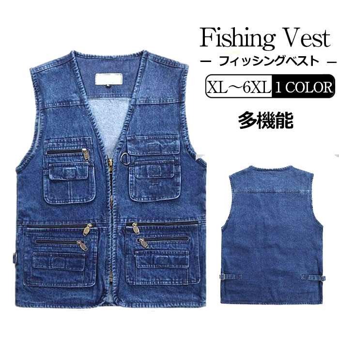 フィッシングベスト メンズ デニムベスト 多ポケット 多機能 ベスト 便利 収納 ポケット 機能性 釣り 渓流 登山 アウトドア キャンプ 作業着 作業服 メンズ