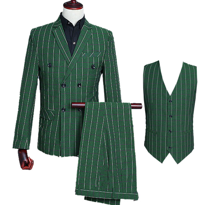 スーツ メンズ スリム ビジネス 秋冬 グリーン ストライプ おしゃれ スリムスーツ ビジネススーツ ノータック 2ボタン 洗える 細身 男性 セットアップ(ジャケット パンツ ベスト)6104