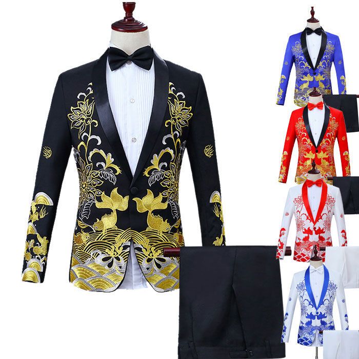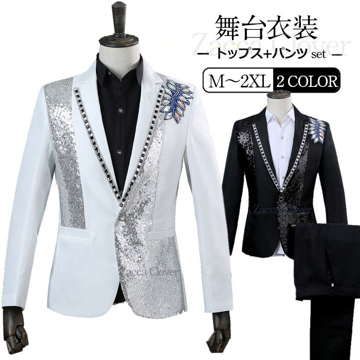 ステージ衣装 メンズ ステージ スーツ ジャケット パンツ セットアップ スパンコール 花 パーティ 司会 カラオケ イベント コスプレ 衣装 ダンス衣装 発表会 新年会 忘年会 余興 衣装 舞台衣装