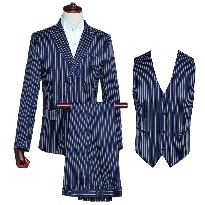 スーツ メンズ スリム ビジネス ベスト付き3点セット スリムスーツ ビジネススーツ ネイビー ストライプ オシャレ 洗える 細身 男性 セットアップ(ジャケット パンツ ベスト)