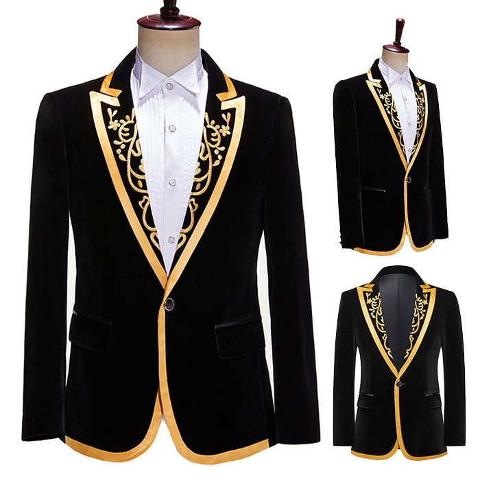 ステージ衣装 メンズ ジャケット ブラック 黒 ゴールド 金 刺繍 パーティ 司会 カラオケ イベント コスプレ 衣装 ダンス衣装 発表会 新年会 忘年会 余興 衣装 舞台衣装 男性 大人用 ハロウィ