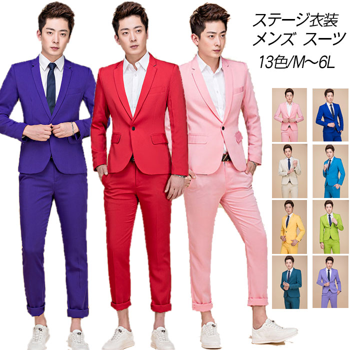 ステージ衣装 メンズ スーツ カラースーツ 上下2点セット 忘年会 新年会 ステージ衣装 ダンス衣装 カラオケ衣装 舞台衣装 ハロウィン コスプレ 全13色
