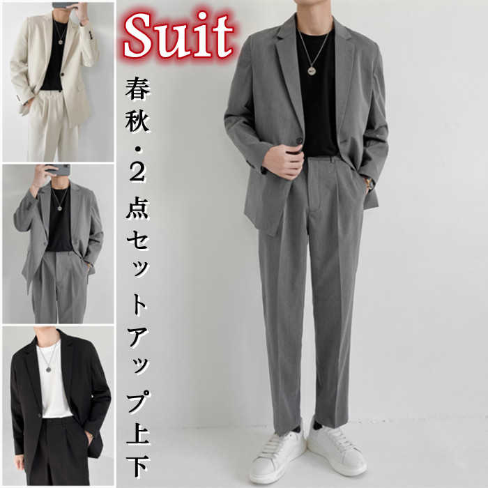 2点セットアップ上下 テーラードジャケット スラックス 夏品 男性用 無地 涼しい 3colors 灰色 黒色