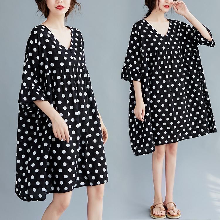 レディース ワンピース 婦人服 ドットワンピース ドットワンピ 水玉 ワンピース vネックワンピース 夏 Vネック ドット柄 大人ワンピース カジュアルワンピース ゆったり 大きいサイズ 五分袖 5分