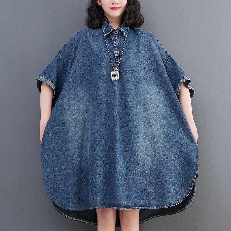 レディース デニムワンピース 春夏 ゆったり 襟付き 可愛い 半袖 大きいサイズ 249レディースファッション ワンピース