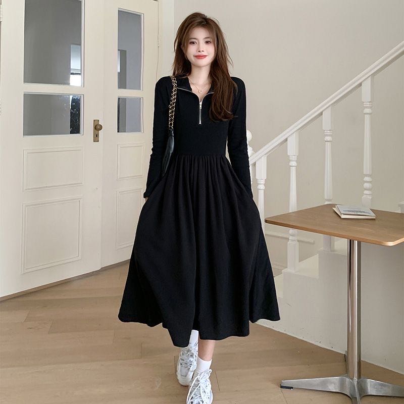 ワンピース 長袖 ロングワンピース POLOネック 黒ワンピ 春 秋レディースファッション ワンピース