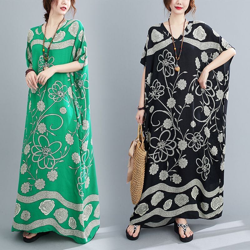 レディース ロングワンピース 夏 ゆったり Vネック 半袖 花柄 大きいサイズ 可愛いレディースファッション ワンピース