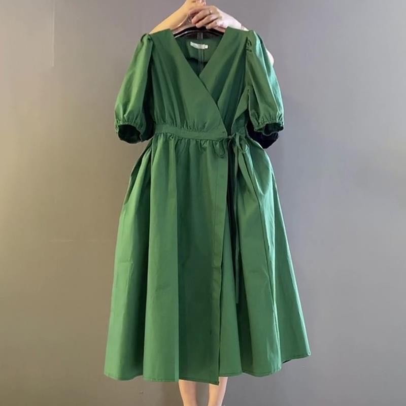 レディース ワンピース 夏 ゆったり Vネック 半袖 大きいサイズ 無地 シンプル 可愛い LWDA132