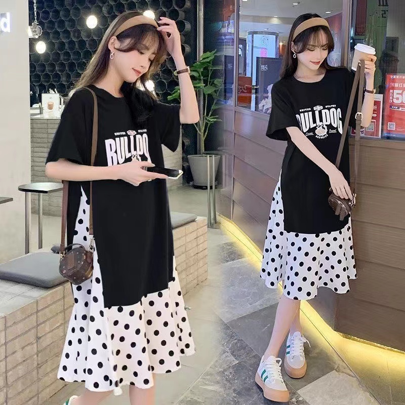 Tシャツワンピース レディース ドット柄 大きいサイズ 切替 夏 半袖 フレアレディースファッション ワンピース