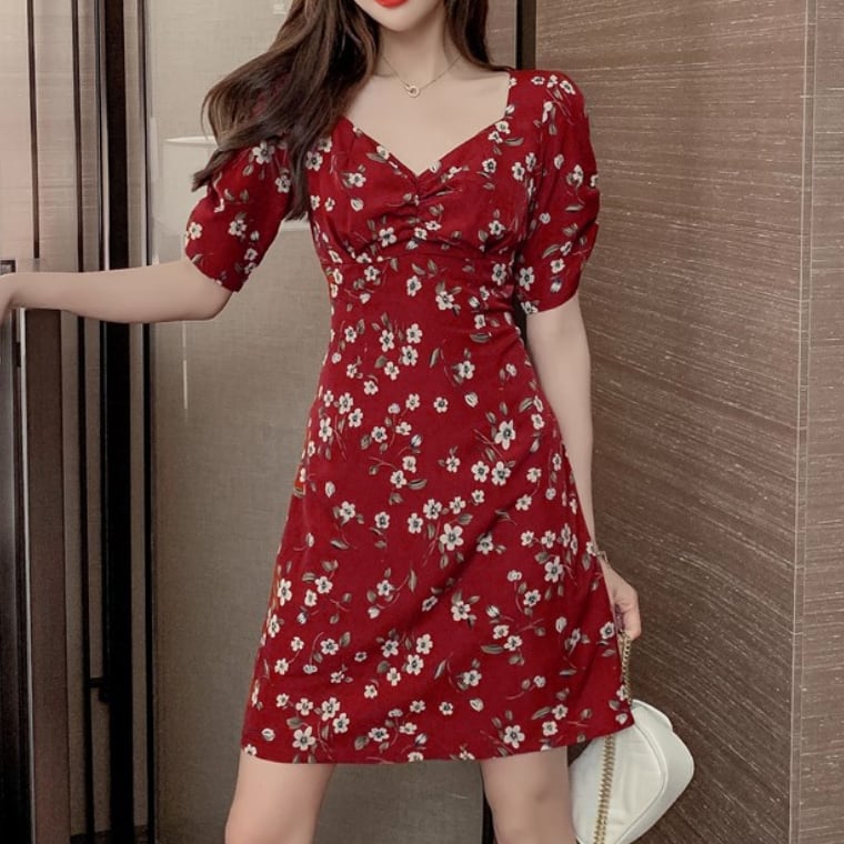 ワンピース 上着 人気 おすすめ おしゃれ お洒落 激安 安い プチプラ 半袖 Vネック 柄 ミニワンピース プリント 膝丈 ふんわり 花柄 可愛い かわいい 韓国 シンプル カジュアル