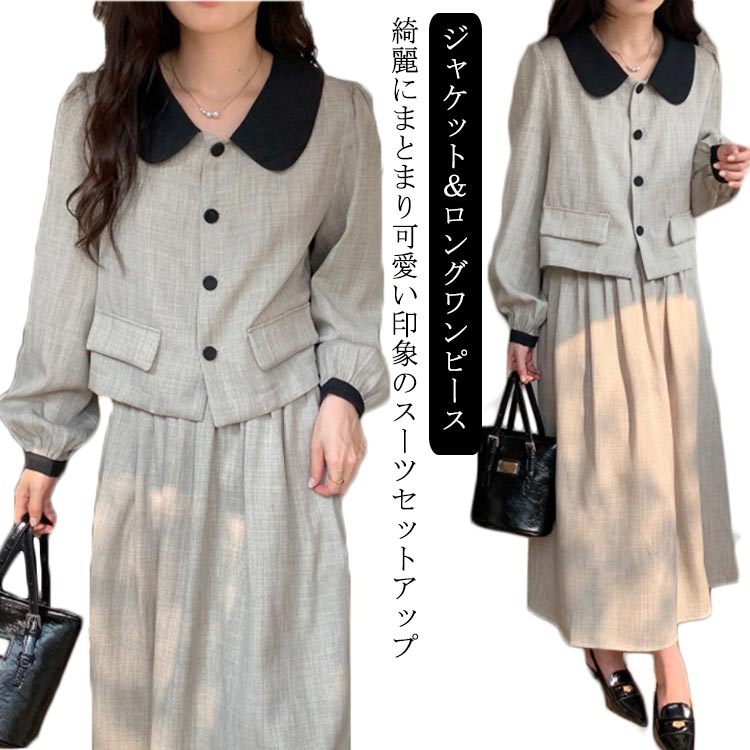 ジャケット&ロングワンピース 20代 ママスーツ カジュアル フォーマルスーツ レディース 母 ロング丈 スーツコート 入学式 卒園式 卒業式 セットアップ ジャケット おしゃれ フォーマル エレガン
