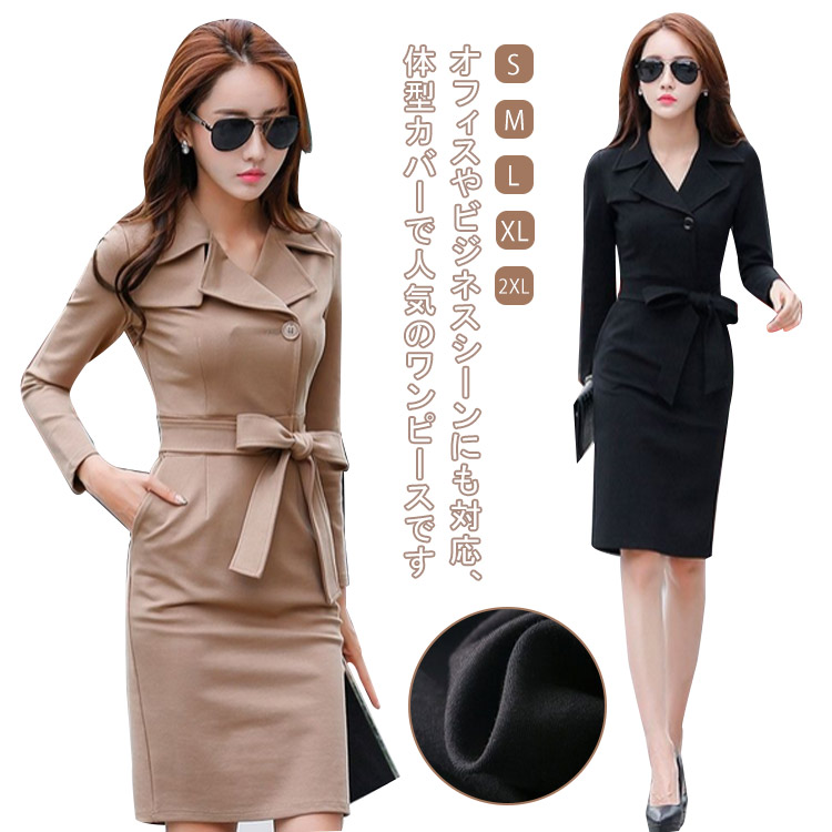 パーティードレス 長袖 黒 膝丈 きれいめ フォーマル タイトワンピ レディース 演奏会 ドレス 卒業式 ロング ママ ワンピース ブラックフォーマル ドレス オフィス OL 大きいサイズ ひざ丈 冠