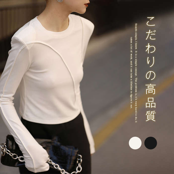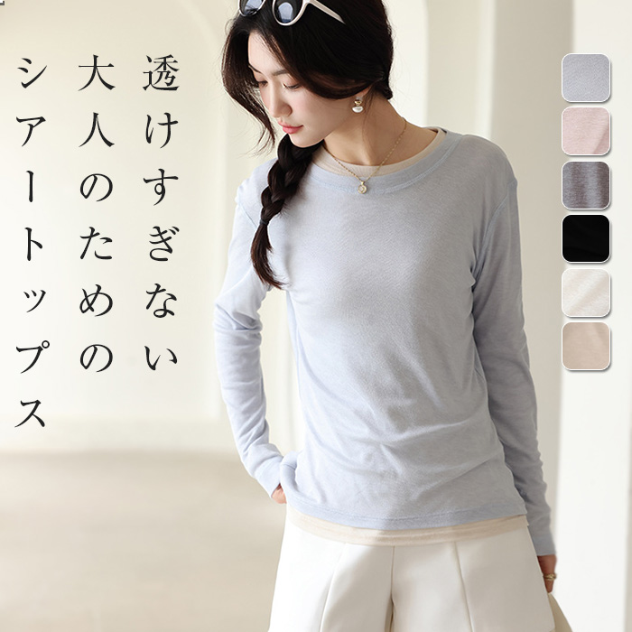 シアー クルーネック 長袖 トップス レディース シャツ カットソー 透け感 レイヤード ストレッチ トレンド シンプル 春 秋 冬