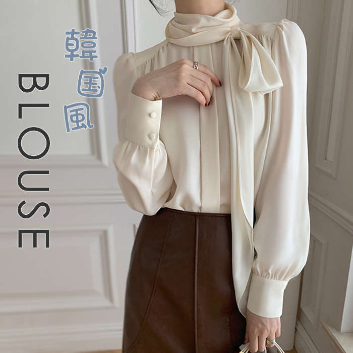 Bow tie blouse 韓国風ボウタイブラウス ♪レディースファッション トップス Tシャツ カットソー