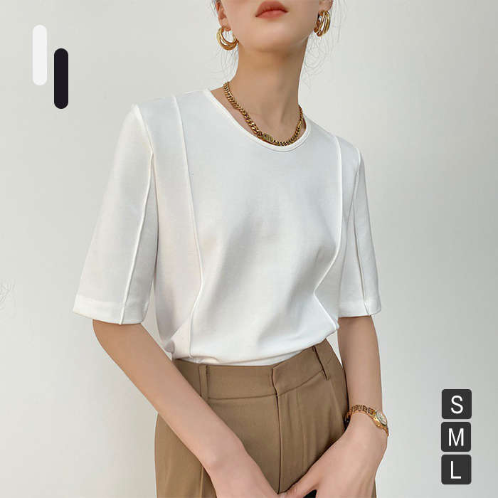 シャツ レディース 半袖 夏 ネック カジュアル 無地 ショート丈 トップス カットソー インナー プルオーバー 大人 夏 きれいめ お洒落 細見え 体型カバー オフィス 通勤 シンプル 20代