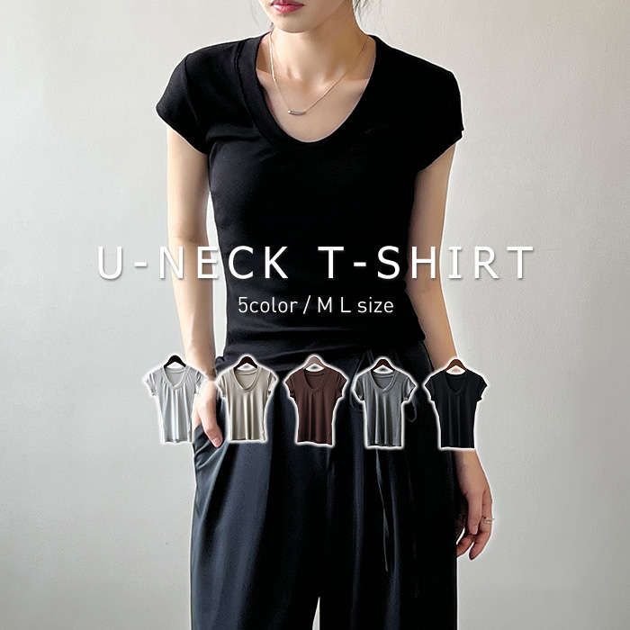 tシャツ レディース 半袖 夏 uネック カジュアル 無地 ショート丈 トップス カットソー インナー プルオーバー 大人 夏 きれいめ お洒落 細見え 体型カバー オフィス 通勤 シンプル 20代