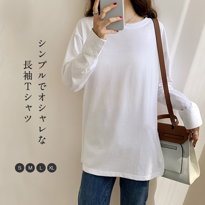 カットソー 長袖 レディース 長袖tシャツ 綿混 無地 tシャツ ショート丈 トップス クルーネック インナー シャツ袖口 デザイン 大人 シンプル かわいい カジュアル ゆったり 体型カバー 着痩せ