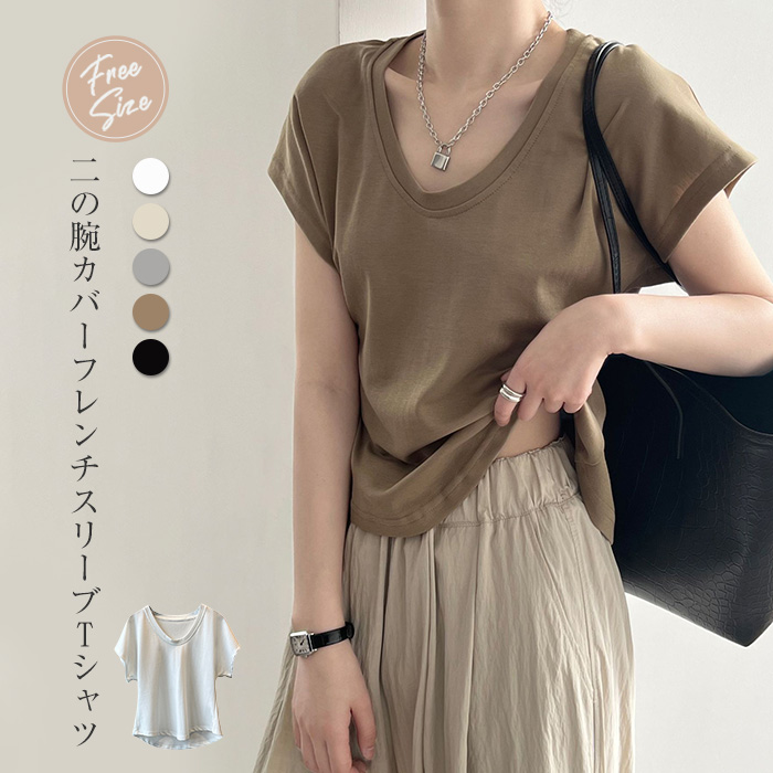 Tシャツ レディース フレンチスリーブ 半袖 tシャツ 白Tシャツ カットソー トップス 夏 春 春夏 プルオーバー 大きいサイズ 体型カバー 無地 シンプル ゆったり クルーネック フレンチ カジュ