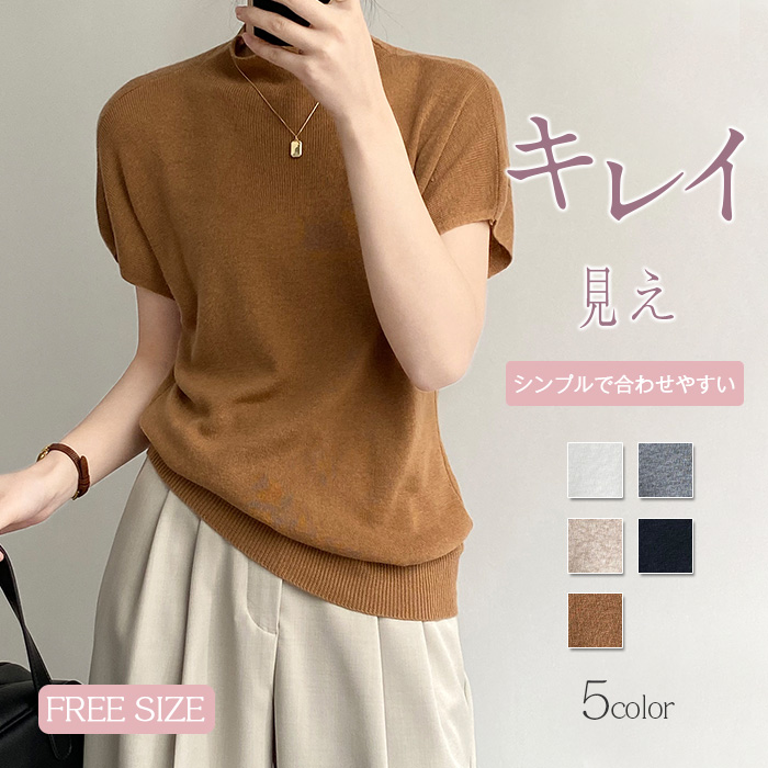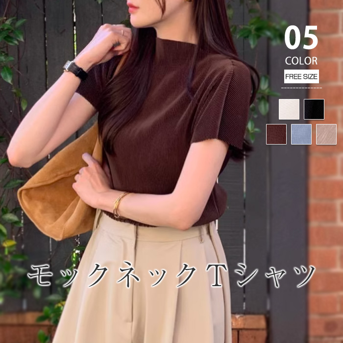 Tシャツ カットソー レディース モックネックトップス 半袖 冷房対策 半袖Tシャツ ボトルネック ゆったり ハイネック 大きいサイズ 無地 デイリー おしゃれ カジュアル 仕事 シンプル 着痩せ 体