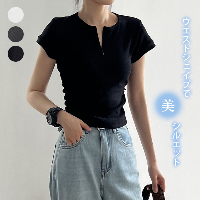 体型カバーができて暑い日に涼しい ほめられTシャツ 接触冷感 モックネック 半袖Tシャツレディースファッション トップス Tシャツ カットソー