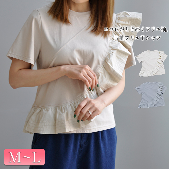 選べるM~Lサイズ展開 贅沢なお洒落を楽しむフリルデザインTシャツ♪レディースファッション トップス Tシャツ カットソー