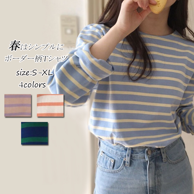tシャツ ボーダー プルオーバー クルーネック 春秋 レイヤードレディースファッション トップス Tシャツ カットソー