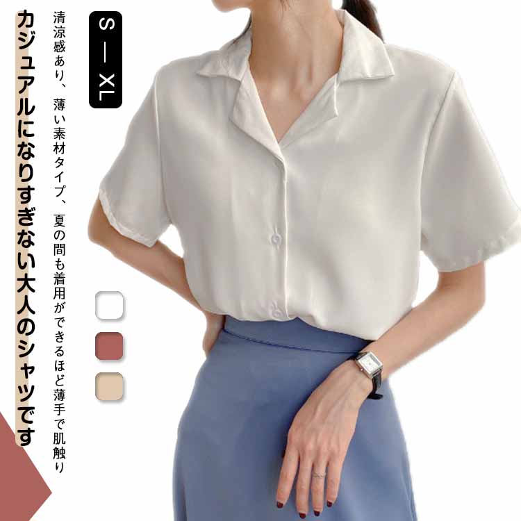半袖 涼しい 襟付きトップス 白 トップス レディース 体型カバー 上着 オフィス カジュアル 大きいサイズ シャツブラウス 無地 ゆったり 通勤 事務 ゆったり 冷感 おしゃれ ビジネス 形態