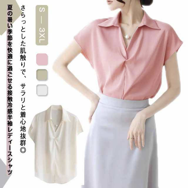 tシャツ ブラウス スキッパー レディース 接触冷感 前開き 襟付き スキッパー UV対策 ノーアイロン ワイシャツ 半袖 ストレッチ ホワイト 春夏用 トップス フォーマル スキッパーシャツ ビジネ