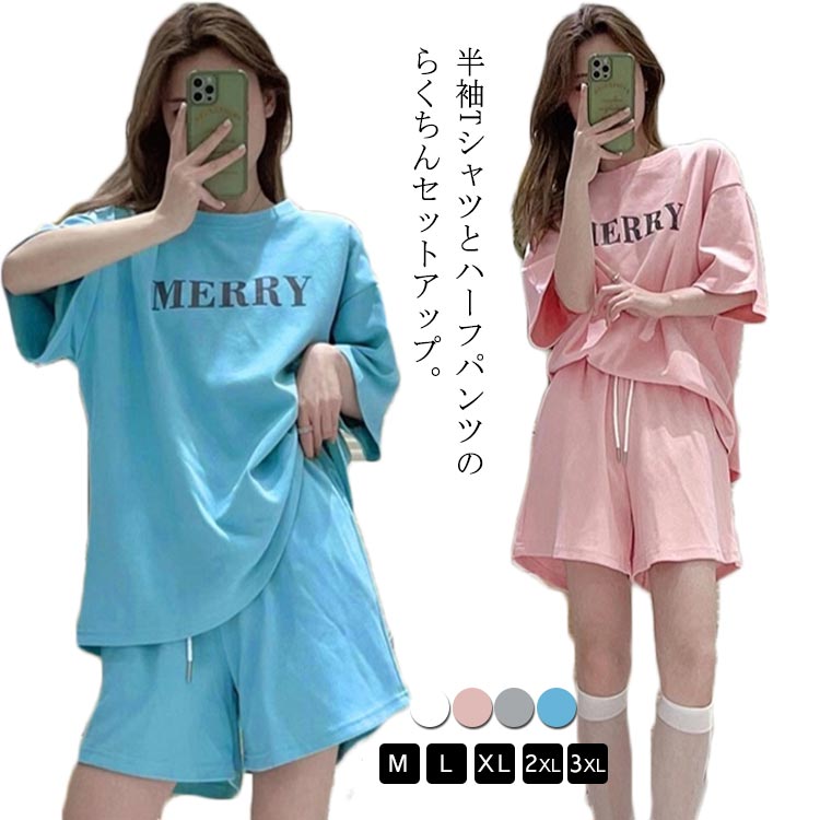 レディース ロゴ Tシャツ ショートパンツ セットアップレディースファッション トップス Tシャツ カットソー