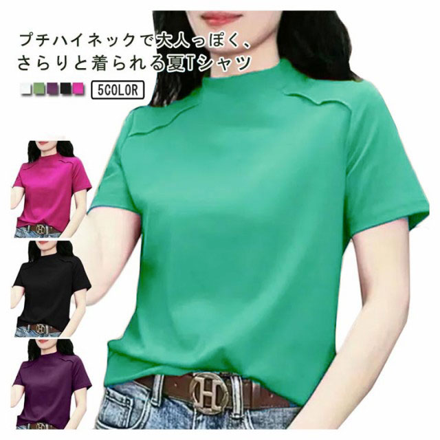 レディース プチハイネック 夏服 薄手 半袖ブラウス ストレッチ ゆったり トップス 半袖 夏 ハイネック モックネック tシャツ 大人 半袖tシャツ カットソー 体型カバー 吸汗 抗菌 UVカット