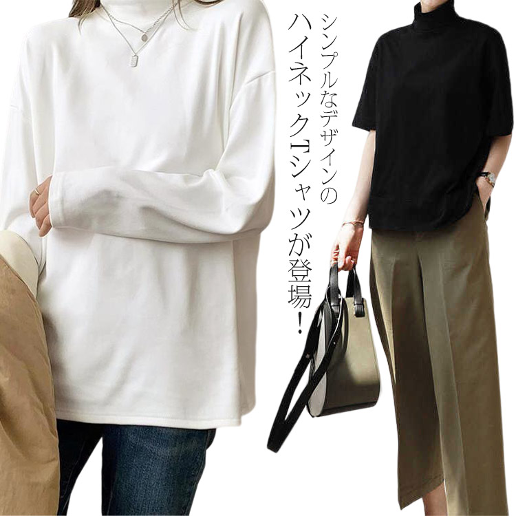 シンプル モックネックシャツ カットソー トップス カット プチハイネック シンプル 無地 春夏秋 半袖シャツ