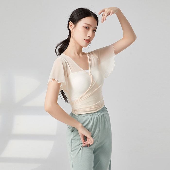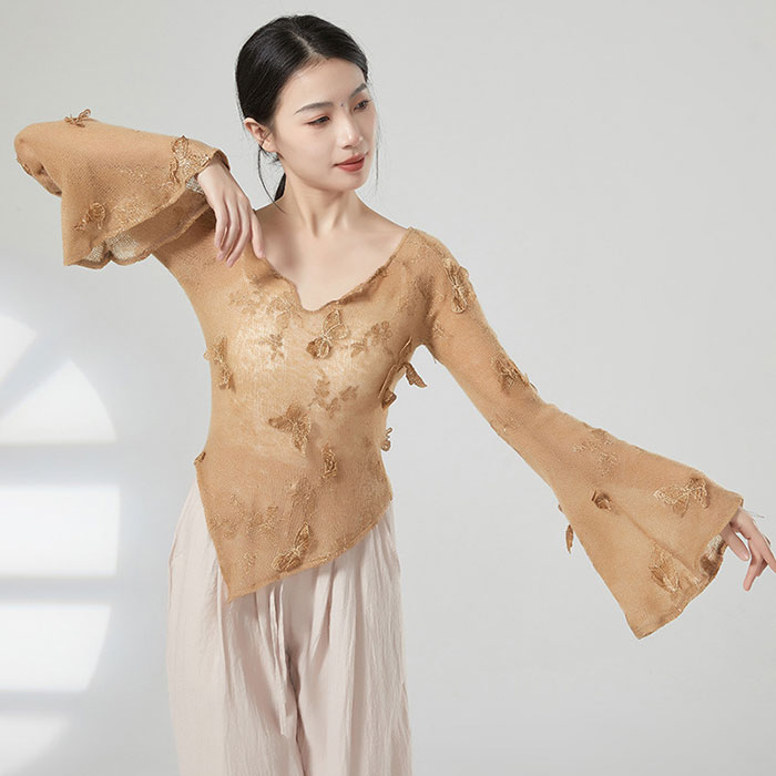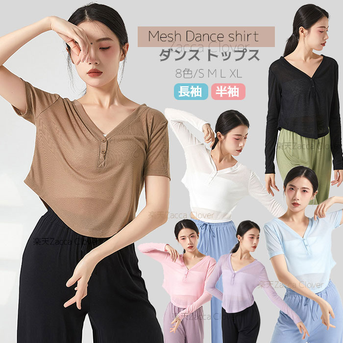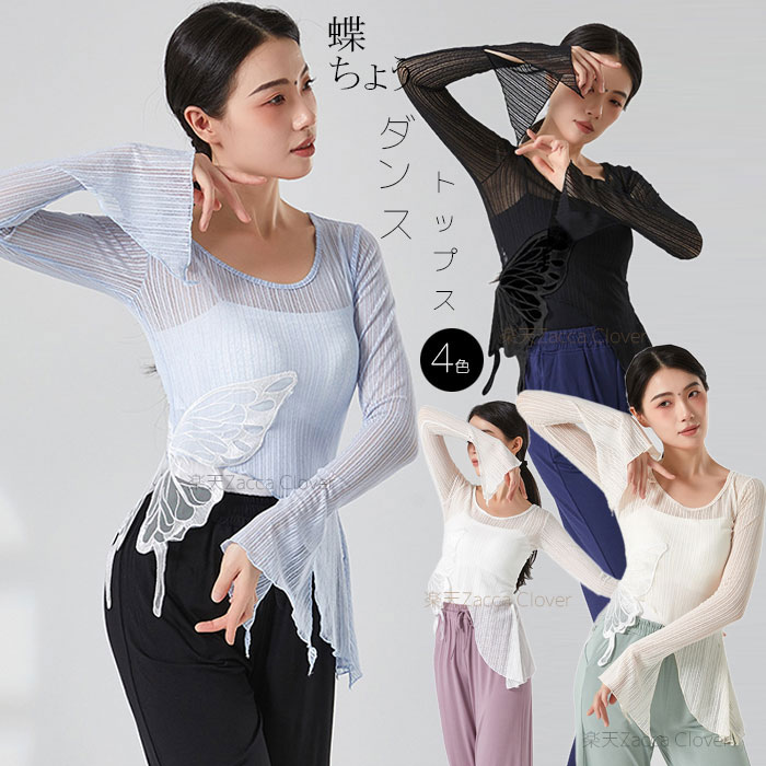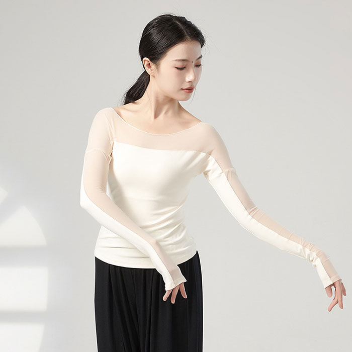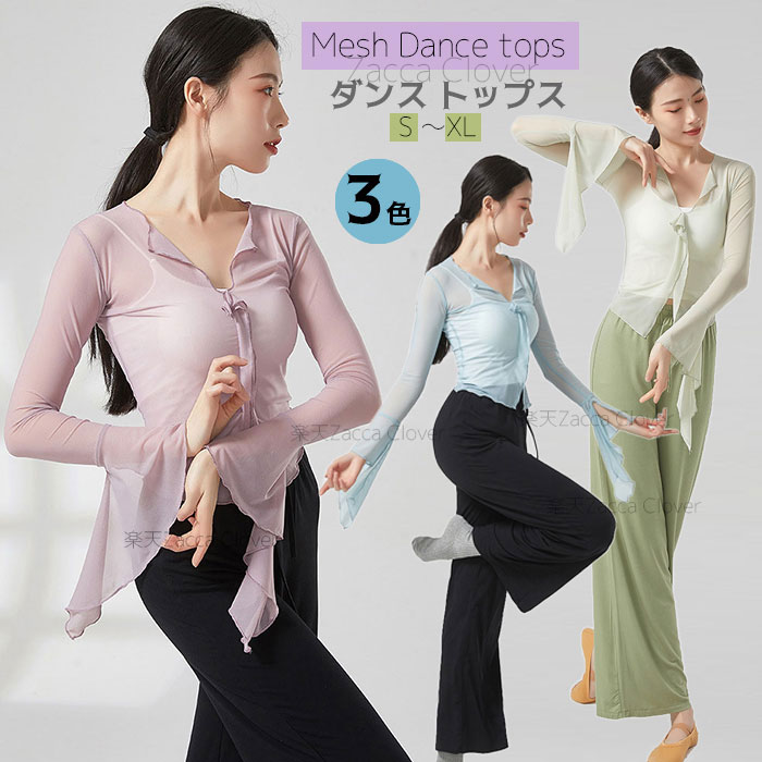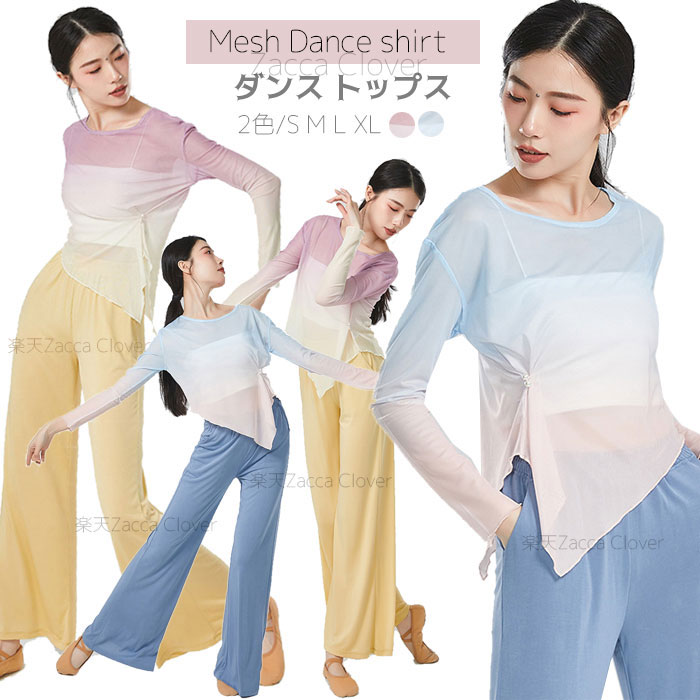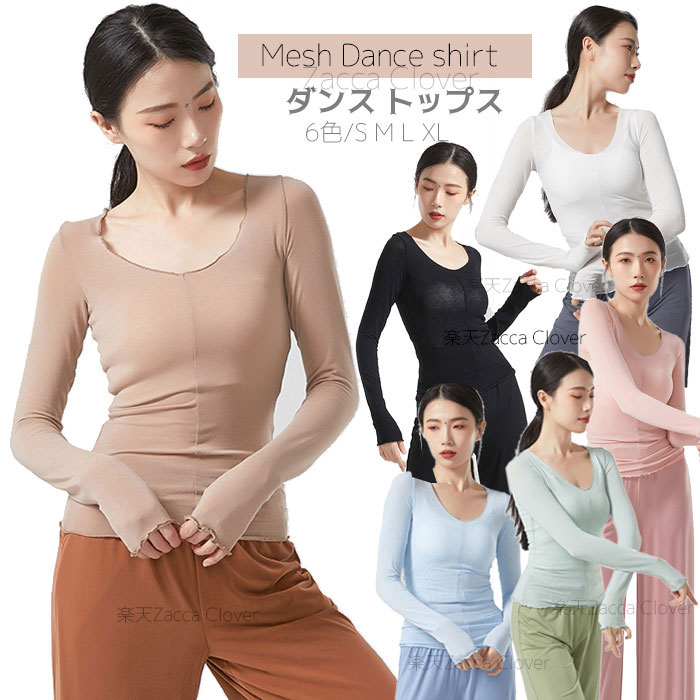 ダンストップス 長袖 透け感 トップス レッスンウェア ダンス着 バレエ レッスン着 ダンストップス