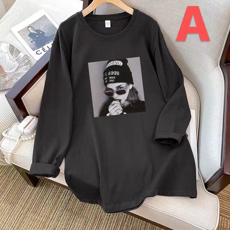 レディース トップス シャツ 春秋 カジュアル 丸首 ゆったり 可愛い 大きいサイズ 長袖 307