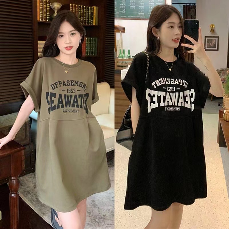 レディース Tシャツ 春夏秋 ゆったり トップス 半袖 英文字 薄手 丸首 可愛い カジュアル カーキ ブラック M L XL 2XL SLUA106