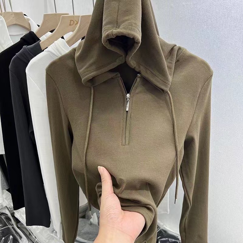 Tシャツ レディース 春秋 ゆったり 長袖 フード付き 通勤 カジュアル トップス 無地 スリム 可愛い グリーン ホワイト グレー ブラック M L XL 2XL SLUA279