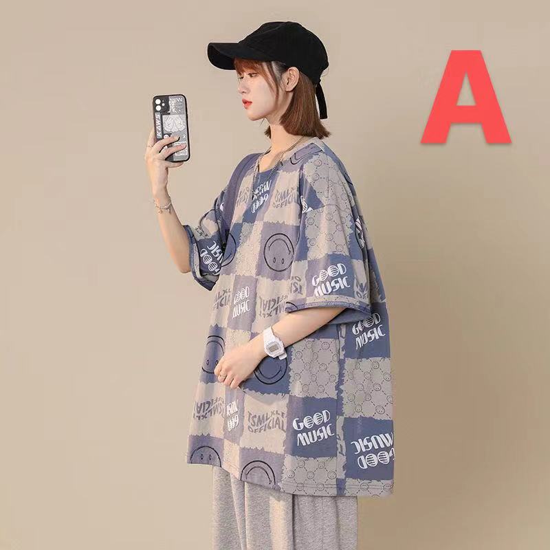 レディース シャツ トップス 夏 丸首 スマイル柄 総柄 半袖 大きいサイズレディースファッション トップス シャツ カットソー