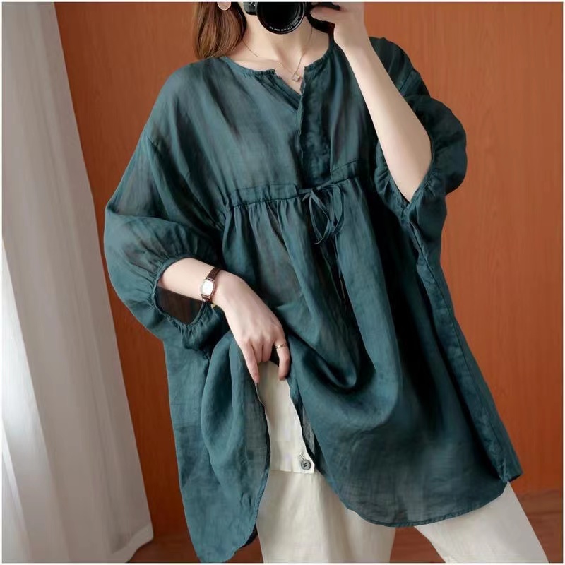 レディース シャツ 春夏 シャツ ゆったり ロング ネックレディースファッション トップス シャツ カットソー