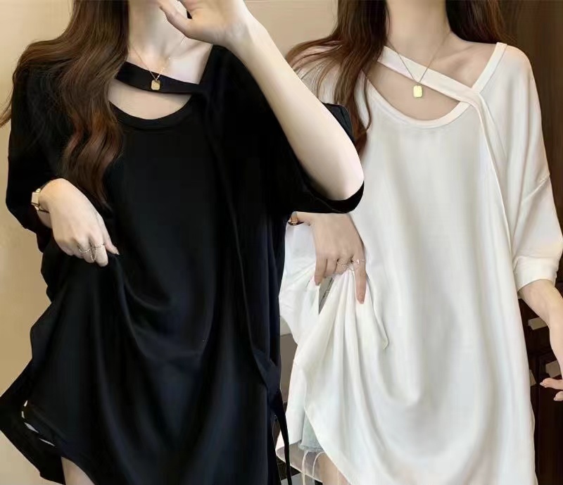 シャツ レディース カットソー チュニック 半袖 Tシャツ 重ね着 夏 無地 インナー スリット ビッグシルエット シンプル トップス ナチュラル 着回し 定番 デート デイリー かわいい
