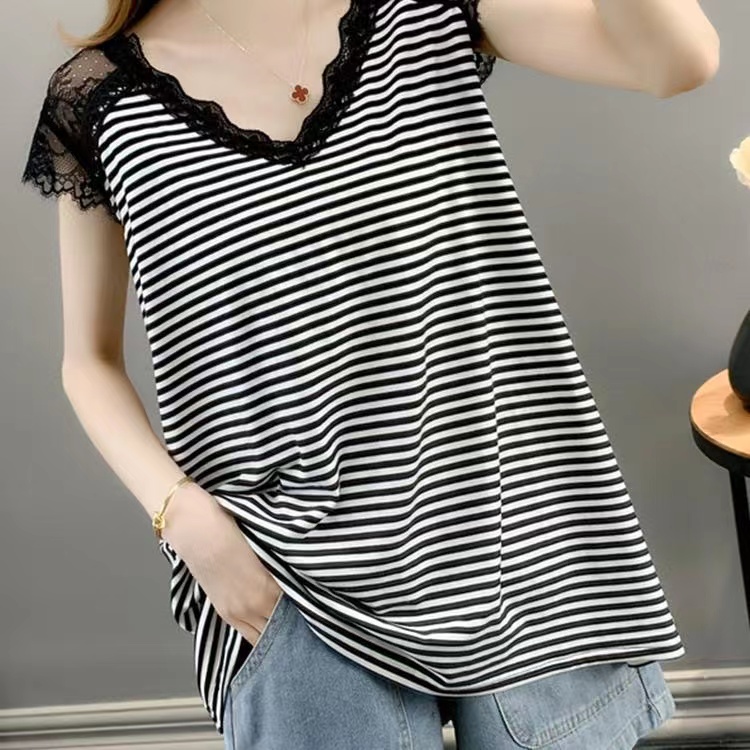トップス レディース 夏 ゆったり レース Vネック 通勤 Tシャツ 可愛い 七分丈袖 薄手 ホワイト グレー コーヒー カーキ SLUA161